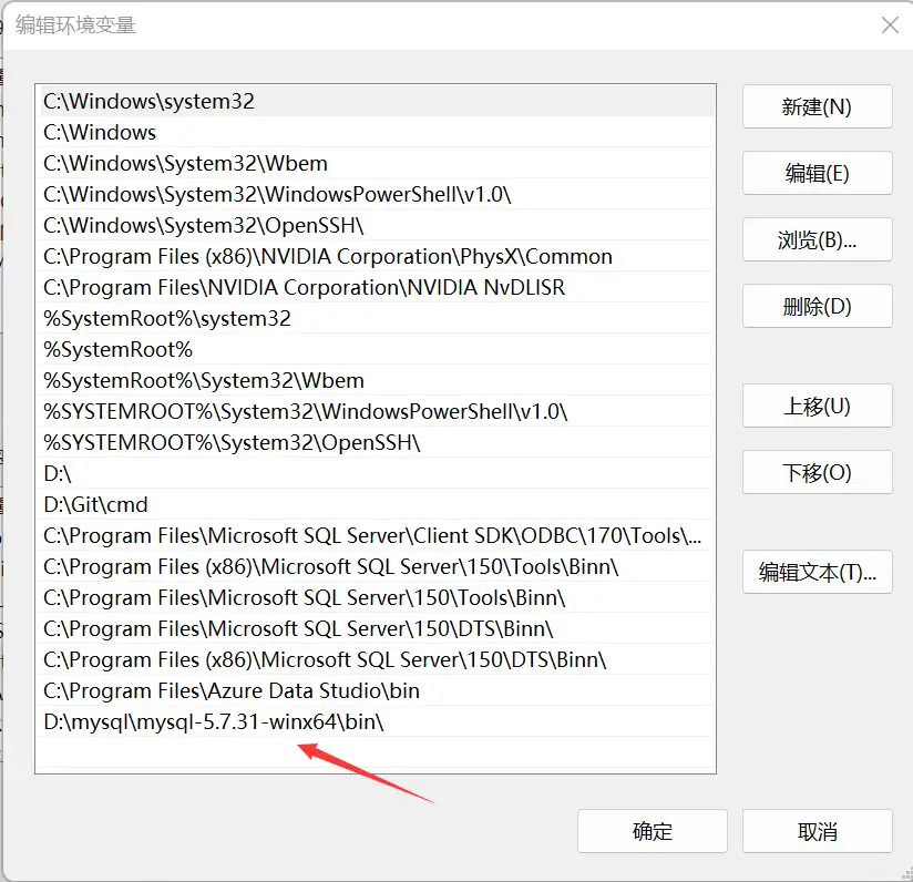 我们会发现,每次链接如果都要输入这个奇长无比的文件路径太过麻烦,那我们可以以将xxxxx\bin\这一串设为环境变量,在系统变量中找到Path